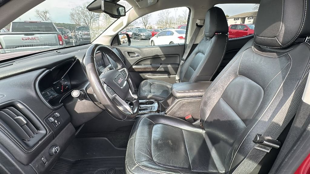This 2017 GMC Canyon is equipped with Driver Alert Package (Forward Collision Alert and Lane Departure Warning System), Preferred Equipment Group 2LT, Trailering Package, 3.42 Rear Axle Ratio, 4-Wheel Disc Brakes, 6 Speakers, ABS brakes, Air Conditioning, Alloy wheels, AM/FM radio: SiriusXM, Auto-dimming Rear-View mirror, Automatic temperature control, Bose Premium 7-Speaker Audio System Feature, Bumpers: body-color, Compass, Delay-off headlights, Driver door bin, Driver vanity mirror, Dual front impact airbags, Dual front side impact airbags, Electronic Stability Control, Emergency communication system: OnStar Guidance, Exterior Parking Camera Rear, Front anti-roll bar, Front Bucket Seats, Front Center Armrest, Front fog lights, Front reading lights, Front wheel independent suspension, Fully automatic headlights, Heated door mirrors, Heated front seats, Illuminated entry, Integrated Trailer Brake Controller, Leather-Appointed Seat Trim, Low tire pressure warning, Occupant sensing airbag, Outside temperature display, Overhead airbag, Overhead console, Panic alarm, Passenger door bin, Passenger vanity mirror, Power door mirrors, Power driver seat, Power passenger seat, Power steering, Power windows, Premium audio system: IntelliLink, Radio data system, Radio: AM/FM Stereo 8 Diagonal Color Touch Screen, Radio: AM/FM Stereo w/8 Color Touch Navigation, Rear reading lights, Rear seat center armrest, Rear step bumper, Rear window defroster, Remote keyless entry, Security system, SiriusXM Satellite Radio, Speed control, Speed-sensing steering, Steering wheel mounted audio controls, Tachometer, Telescoping steering wheel, Tilt steering wheel, Traction control, Trip computer, Variably intermittent wipers, and Wheels: 18 x 8.5 Polished Cast Aluminum.