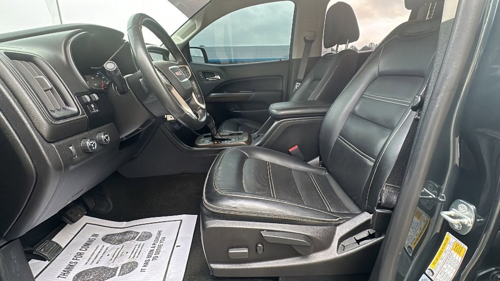 This 2017 GMC Canyon is equipped with Driver Alert Package (Forward Collision Alert and Lane Departure Warning System), Preferred Equipment Group 4SD (5 Rectangular Chrome Assist Steps, Black Spray-On Bedliner w/GMC Logo, Bose Premium 7-Speaker Audio System Feature, Denali-Specific Chrome Grille, Heated Steering Wheel, Polished Exhaust Tip, Tow/Haul Mode, Ventilated Driver Seat, and Ventilated Front Passenger Seat), Trailering Package, 4WD, Navigation System, 3.42 Rear Axle Ratio, 4-Wheel Disc Brakes, 7 Speakers, ABS brakes, Air Conditioning, All-Weather Floor Mats, Alloy wheels, AM/FM radio: SiriusXM, Auto-dimming Rear-View mirror, Automatic temperature control, Bumpers: body-color, Compass, Delay-off headlights, Driver door bin, Driver vanity mirror, Dual front impact airbags, Dual front side impact airbags, Electronic Stability Control, Emergency communication system: OnStar Guidance, Exterior Parking Camera Rear, Front anti-roll bar, Front Bucket Seats, Front Center Armrest, Front fog lights, Front reading lights, Front wheel independent suspension, Fully automatic headlights, Heated door mirrors, Heated front seats, Heated steering wheel, Illuminated entry, Integrated Trailer Brake Controller, Leather-Appointed Seat Trim, Low tire pressure warning, Occupant sensing airbag, Outside temperature display, Overhead airbag, Overhead console, Panic alarm, Passenger door bin, Passenger vanity mirror, Power door mirrors, Power driver seat, Power passenger seat, Power steering, Power windows, Premium audio system: IntelliLink, Radio data system, Radio: AM/FM Stereo w/8 Color Touch Navigation, Rear reading lights, Rear seat center armrest, Rear step bumper, Rear window defroster, Remote keyless entry, Security system, SiriusXM Satellite Radio, Speed control, Speed-sensing steering, Steering wheel mounted audio controls, Tachometer, Telescoping steering wheel, Tilt steering wheel, Traction control, Trip computer, Variably intermittent wipers, Ventilated front seats, and Wheels: 20 Ultra-Bright Machined Aluminum.