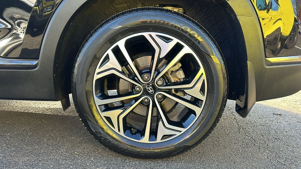 This 2020 Hyundai Santa Fe is equipped with Cargo Package, Option Group 01, Black Leather, Navigation System, 12 Speakers, 4-Wheel Disc Brakes, ABS brakes, Air Conditioning, Alloy wheels, AM/FM radio: SiriusXM, Apple CarPlay & Android Auto, Auto High-beam Headlights, Auto-dimming Rear-View mirror, Automatic temperature control, Axle Ratio 3.320, Brake assist, Bumper Applique, Bumpers: body-color, Cargo Cover, Carpeted Floor Mats, Compass, Delay-off headlights, Driver door bin, Driver vanity mirror, Dual front impact airbags, Dual front side impact airbags, Electronic Stability Control, Emergency communication system, Four wheel independent suspension, Front anti-roll bar, Front Bucket Seats, Front Center Armrest, Front dual zone A/C, Front fog lights, Front reading lights, Fully automatic headlights, Garage door transmitter: HomeLink, Heads-Up Display, Heated & Ventilated Front Bucket Seats, Heated door mirrors, Heated front seats, Heated rear seats, Heated steering wheel, Illuminated entry, Leather Seating Surface, Leather Shift Knob, Leather steering wheel, Low tire pressure warning, Memory seat, Mudguards, Occupant sensing airbag, Outside temperature display, Overhead airbag, Overhead console, Panic alarm, Passenger door bin, Passenger vanity mirror, Power door mirrors, Power driver seat, Power Liftgate, Power moonroof, Power passenger seat, Power steering, Power windows, Radio: Infinity Premium AM/FM/MP3 Display Audio, Rain sensing wipers, Rear anti-roll bar, Rear Parking Sensors, Rear seat center armrest, Rear window defroster, Rear window wiper, Remote keyless entry, Security system, Speed control, Speed-sensing steering, Split folding rear seat, Spoiler, Steering wheel mounted audio controls, Tachometer, Telescoping steering wheel, Tilt steering wheel, Traction control, Trip computer, Turn signal indicator mirrors, Variably intermittent wipers, Ventilated front seats, Wheel Locks, and Wheels: 19 x 7.5J Alloy.