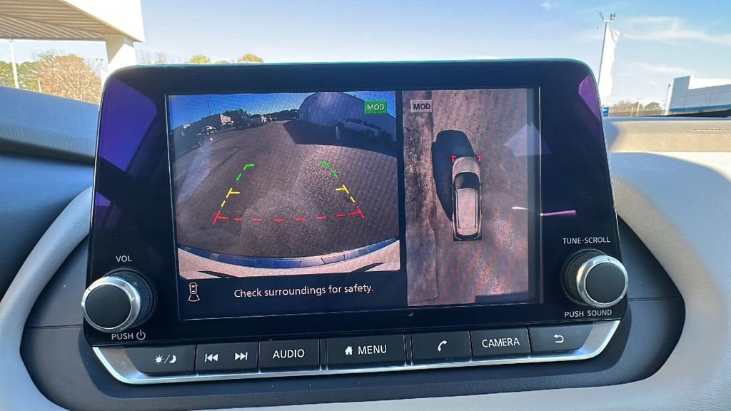 This 2021 Nissan Rogue is equipped with 19 Aluminum Alloy Wheels, 4-Wheel Disc Brakes, 5.604 Axle Ratio, 6 Speakers, ABS brakes, Air Conditioning, Alloy wheels, AM/FM Radio, AM/FM radio, Auto High-beam Headlights, Auto-dimming Rear-View mirror, Automatic temperature control, Black Splash Guards (Set of 4), Brake assist, Bumpers: body-color, Chrome Rear Bumper Protector, Delay-off headlights, Driver door bin, Driver vanity mirror, Dual front impact airbags, Dual front side impact airbags, Electronic Stability Control, Emergency communication system: NissanConnect Services, Exterior Parking Camera Rear, First Aid Kit, Floor Mats w/2-Piece Cargo Area Protector, Four wheel independent suspension, Front anti-roll bar, Front Bucket Seats, Front Center Armrest, Front dual zone A/C, Front fog lights, Front reading lights, Fully automatic headlights, Heated door mirrors, Heated Front Bucket Seats, Heated front seats, Heated steering wheel, Illuminated entry, Knee airbag, Leather steering wheel, Leather-Appointed Seat Trim, Low tire pressure warning, Memory seat, NissanConnect featuring Apple CarPlay and Android Auto, Occupant sensing airbag, Outside temperature display, Overhead airbag, Overhead console, Panic alarm, Passenger door bin, Passenger vanity mirror, Power door mirrors, Power driver seat, Power Liftgate, Power moonroof, Power passenger seat, Power steering, Power windows, Radio data system, Rear air conditioning, Rear anti-roll bar, Rear Parking Sensors, Rear seat center armrest, Rear side impact airbag, Rear window defroster, Rear window wiper, Remote keyless entry, Roof rack: rails only, Security system, Speed control, Speed-Sensitive Wipers, Split folding rear seat, Spoiler, Steering wheel mounted audio controls, Tachometer, Telescoping steering wheel, Tilt steering wheel, Traction control, Trip computer, Turn signal indicator mirrors, and Variably intermittent wipers.