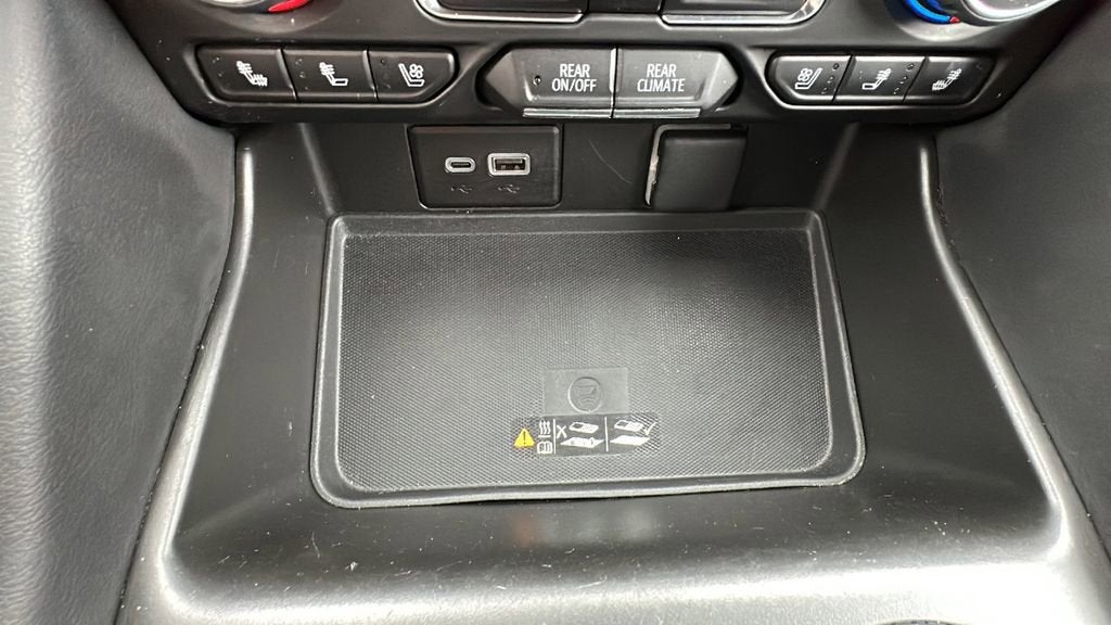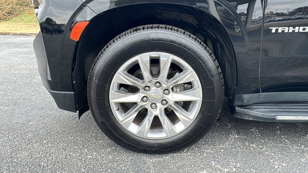 This 2023 Chevrolet Tahoe is equipped with License Plate Front Mounting Package, Preferred Equipment Group 1LZ (1st & 2nd Row Color-Keyed Carpeted Floor Mats, 2-Speed Active Electronic AutoTrac Transfer Case, 3rd Row 60/40 Power-Folding Split-Bench Seat, Auto-Dimming Inside Rear-View Mirror, Bose 10-Speaker Centerpoint Surround Audio Sys Ft, Bright Front & Rear Door Sill Plates, Chrome Door Handles w/Body-Color Strip, Chrome Mirror Caps, Color-Keyed Carpeting Floor Covering, Driver & Front Outboard Passenger Airbags, Dual Exhaust System, Enhanced Driver Information Center, Floor Console, Hands-Free Rear Power Programmable Liftgate, Heated 2nd Row Outboard Seats, Heated Steering Wheel, Hill Descent Control, Infotainment Display, Lane Change Alert w/Side Blind Zone Alert, LED Daytime Running Lamps, Memory Settings, Outside Heated Power-Adjustable Mirrors, Power Release 2nd Row Bucket Seats, Power Tilt & Telescopic Steering Column, Rear Cross Traffic Alert, Remote Start, Safety Alert Seat, SiriusXM Radio w/360L, Universal Home Remote, Wireless Charging, and Wrapped Steering Wheel), 4WD, Black Leather, Navigation System, 10 Speakers, 20 x 9 Polished Aluminum Wheels, 3.23 Rear Axle Ratio, 3rd row seats: split-bench, 4-Wheel Disc Brakes, ABS brakes, Adaptive suspension, Air Conditioning, Alloy wheels, AM/FM radio: SiriusXM with 360L, Apple CarPlay/Android Auto, Auto High-beam Headlights, Auto-dimming door mirrors, Auto-dimming Rear-View mirror, Auto-leveling suspension, Automatic temperature control, Brake assist, Bumpers: body-color, Compass, Delay-off headlights, Deleted 3 Years of Remote Access, Driver door bin, Driver vanity mirror, Dual front impact airbags, Dual front side impact airbags, Electronic Stability Control, Emergency communication system: OnStar and Chevrolet connected services capable, Four wheel independent suspension, Front anti-roll bar, Front Bucket Seats, Front Center Armrest, Front dual zone A/C, Front High-Back Reclining Bucket Seats, Front reading lights, Fully automatic headlights, Garage door transmitter, Heated & Ventilated Driver & Front Passenger Seats, Heated door mirrors, Heated Driver & Front Passenger Seats, Heated front seats, Heated rear seats, Heated steering wheel, Illuminated entry, Low tire pressure warning, Magnetic Ride Control Suspension, Memory seat, Not Equipped w/4-Way Driver & Fr Pass Pwr Lumbar, Occupant sensing airbag, Outside temperature display, Overhead airbag, Overhead console, Panic alarm, Passenger door bin, Passenger vanity mirror, Perforated Leather Seat Trim, Power door mirrors, Power driver seat, Power Liftgate, Power passenger seat, Power steering, Power windows, Premium audio system: Chevrolet Infotainment 3 Premium, Radio: Chevrolet Infotainment 3 Premium System, Rain sensing wipers, Rear air conditioning, Rear anti-roll bar, Rear reading lights, Rear window defroster, Rear window wiper, Remote keyless entry, Roof rack: rails only, Security system, Speed control, Speed-sensing steering, Split folding rear seat, Spoiler, Steering wheel memory, Steering wheel mounted audio controls, Tachometer, Telescoping steering wheel, Tilt steering wheel, Traction control, Trip computer, Turn signal indicator mirrors, Variably intermittent wipers, Ventilated front seats, and Voltmeter.