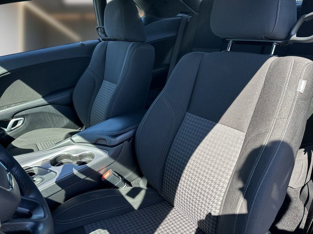 This 2023 Dodge Challenger is equipped with Blacktop Package (Black Fuel Filler Door, Black Grille w/Bezel, Challenger Blacktop Grille Badge, Gloss Black I/P Cluster Trim Rings, Leather Performance Steering Wheel, Satin Black Dodge Tail Lamp Badge, and Wheels: 20 x 8.0 Black Noise Painted), Quick Order Package 2EA, 276 Watt Amplifier, 4-Wheel Disc Brakes, 6 Speakers, ABS brakes, Air Conditioning, Alloy wheels, AM/FM radio, Anti-Lock Brakes, Anti-whiplash front head restraints, Apple CarPlay, Apple CarPlay/Android Auto, Auto Leather Wrapped Shift Knob, Auto-dimming Rear-View mirror, Automatic temperature control, AutoStick Automatic Transmission, Body Color Exterior Mirrors, Brake assist, Bumpers: body-color, Delay-off headlights, Driver door bin, Driver vanity mirror, Dual front impact airbags, Dual front side impact airbags, Electronic Stability Control, Exterior Mirrors w/Heating Element, For More Info, Call 800-643-2112, Four wheel independent suspension, Front anti-roll bar, Front Bucket Seats, Front Center Armrest, Front dual zone A/C, Front reading lights, Fully automatic headlights, Google Android Auto, GPS Antenna Input, Heated door mirrors, Houndstooth Cloth Sport Seat, Illuminated entry, Integrated Center Stack Radio, Integrated Voice Command w/Bluetooth®, Leather Shift Knob, Low tire pressure warning, Media Hub (2 USB, AUX), Outside temperature display, Overhead airbag, Overhead console, Panic alarm, ParkView Rear Back-Up Camera, Passenger door bin, Passenger vanity mirror, Power door mirrors, Power driver seat, Power steering, Power windows, Radio data system, Radio: Uconnect 4 w/7 Display, Rear anti-roll bar, Rear reading lights, Rear seat center armrest, Rear window defroster, Remote keyless entry, Security system, SiriusXM Radio Service, SiriusXM Satellite Radio, Speed control, Speed-sensing steering, Split folding rear seat, Spoiler, Steering wheel mounted audio controls, Tachometer, Telescoping steering wheel, Tilt steering wheel, Tip Start, Traction control, Trip computer, USB Host Flip, Variably intermittent wipers, and Wheels: 18 x 7.5 Aluminum Fine Silver. 19/30 City/Highway MPG