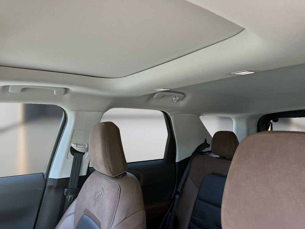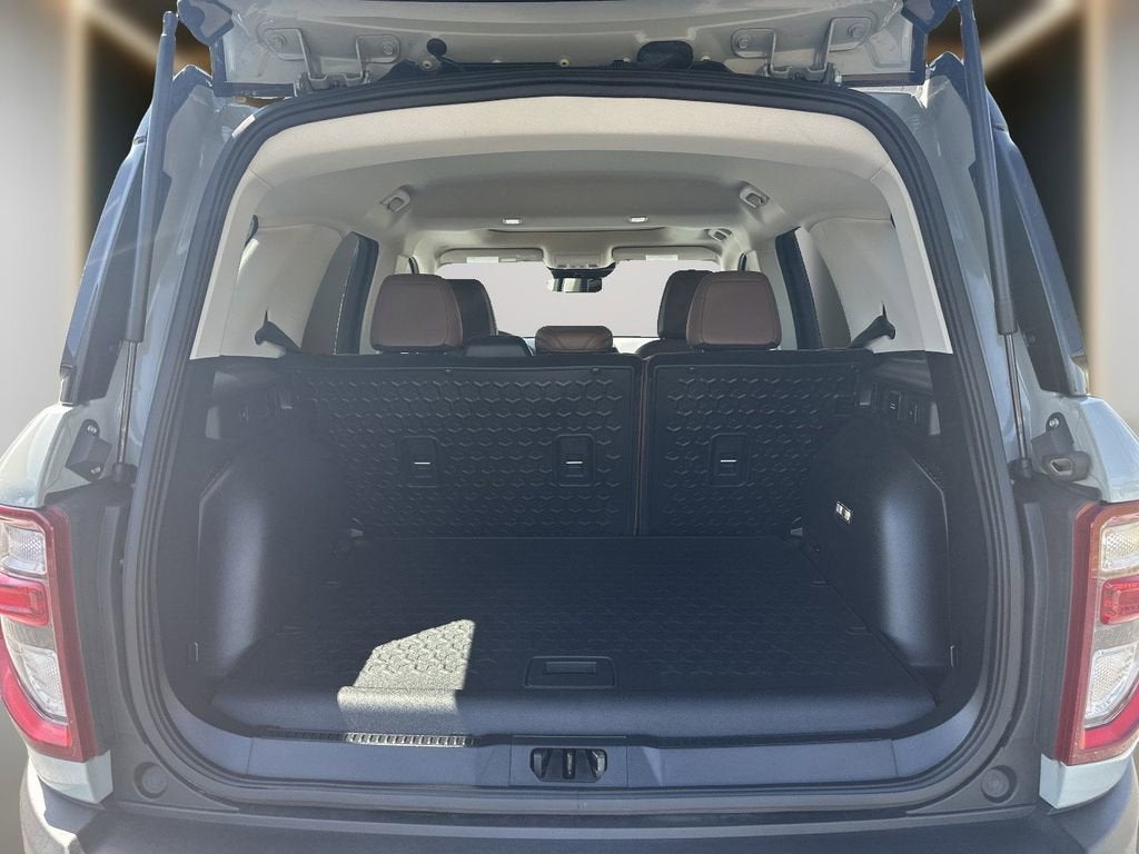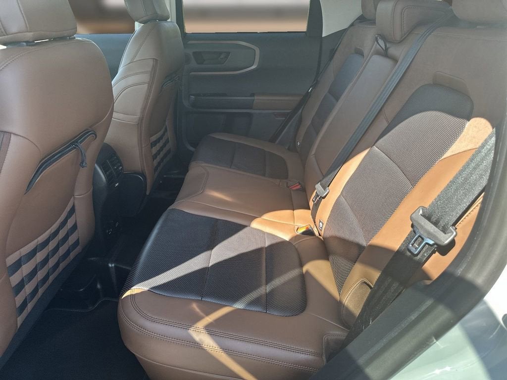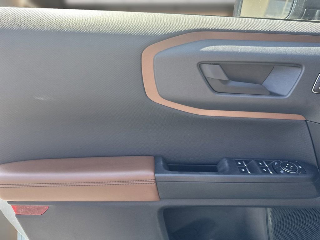 This 2023 Ford Bronco Sport is equipped with Class II Trailer Tow Package w/Trailer Sway Control, Equipment Group 400A, Premium Package (Auto-Dimming Rear-View Mirror, Body-Colored Door Handles, Dual-Zone Electronic Automatic Temperature Control, HD Radio, Heated Steering Wheel, Leather-Trimmed Heated Sport Contour Bucket Seats, Memory Driver's Seat & Sideview Mirror, Rear Parking Sensors, Remote Start System, Universal Garage Door Opener (UGDO), and Wireless Charging Pad), 3.80 Axle Ratio, 4-Wheel Disc Brakes, 6 Speakers, ABS brakes, Air Conditioning, Alloy wheels, AM/FM radio: SiriusXM, AM/FM Stereo, Auto High-beam Headlights, Automatic temperature control, Brake assist, Compass, Delay-off headlights, Driver door bin, Driver vanity mirror, Dual front impact airbags, Dual front side impact airbags, Electronic Stability Control, Emergency communication system: SYNC 3 911 Assist, Four wheel independent suspension, Front & Rear Splash Guards, Front anti-roll bar, Front Bucket Seats, Front Center Armrest, Front fog lights, Front reading lights, Fully automatic headlights, Heated door mirrors, Heated front seats, Illuminated entry, Knee airbag, Low tire pressure warning, Occupant sensing airbag, Outside temperature display, Overhead airbag, Overhead console, Panic alarm, Passenger door bin, Passenger vanity mirror, Power door mirrors, Power driver seat, Power Moonroof, Power steering, Power windows, Radio data system, Rear anti-roll bar, Rear reading lights, Rear seat center armrest, Rear window defroster, Rear window wiper, Remote keyless entry, Security system, SiriusXM, Speed control, Speed-sensing steering, Speed-Sensitive Wipers, Split folding rear seat, Steering wheel mounted audio controls, SYNC 3 Communications & Entertainment System, SYNC 3/Apple CarPlay/Android Auto, Tachometer, Telescoping steering wheel, Tilt steering wheel, Traction control, Trip computer, Unique Style Cloth Htd Sport Contour Bucket Seats, Variably intermittent wipers, and Wheels: 17 Carbonized Gray-Painted Aluminum.