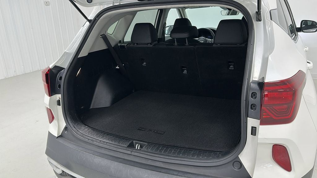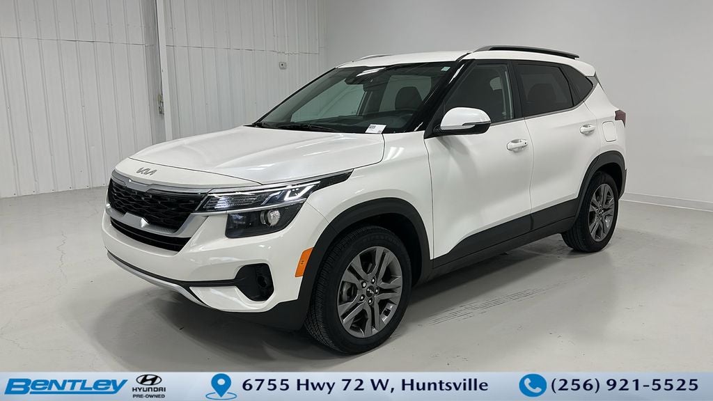 This 2023 Kia Seltos is equipped with Navigation Package (Radio: AM/FM/MP3 Display Audio w/Navigation), 4-Wheel Disc Brakes, 6 Speakers, 6.052 Axle Ratio, ABS brakes, Air Conditioning, Alloy wheels, AM/FM radio, Apple CarPlay & Android Auto, Auto High-beam Headlights, Automatic temperature control, Brake assist, Bumpers: body-color, Cargo Mat, Carpet Floor Mats, Cloth & Sofino Premium Leatherette Seat Trim, Delay-off headlights, Driver door bin, Driver vanity mirror, Dual front impact airbags, Dual front side impact airbags, Electronic Stability Control, Emergency communication system: 911 Connect, Exterior Parking Camera Rear, Front anti-roll bar, Front Bucket Seats, Front Center Armrest, Front fog lights, Front reading lights, Front wheel independent suspension, Fully automatic headlights, Heated door mirrors, Illuminated entry, Leather Shift Knob, Lifestyle Hitch, Low tire pressure warning, Occupant sensing airbag, Outside temperature display, Overhead airbag, Overhead console, Panic alarm, Passenger door bin, Passenger vanity mirror, Power door mirrors, Power steering, Power windows, Radio: AM/FM/MP3 Display Audio, Rear seat center armrest, Rear window defroster, Rear window wiper, Remote keyless entry, Security system, Speed control, Speed-sensing steering, Split folding rear seat, Spoiler, Steering wheel mounted audio controls, Tachometer, Telescoping steering wheel, Tilt steering wheel, Traction control, Trip computer, Turn signal indicator mirrors, Variably intermittent wipers, Wheel Locks, and Wheels: 17 Alloy w/Dark Gray Finish.