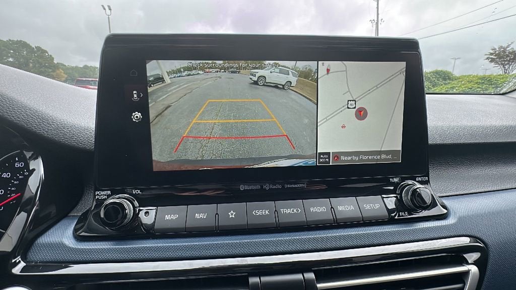 This 2023 Kia Seltos is equipped with Navigation Package (Radio: AM/FM/MP3 Display Audio w/Navigation), 4-Wheel Disc Brakes, 6 Speakers, 6.052 Axle Ratio, ABS brakes, Air Conditioning, Alloy wheels, AM/FM radio, Apple CarPlay & Android Auto, Auto High-beam Headlights, Automatic temperature control, Brake assist, Bumpers: body-color, Cargo Mat, Cargo Tray, Carpet Floor Mats, Cloth & Sofino Premium Leatherette Seat Trim, Delay-off headlights, Driver door bin, Driver vanity mirror, Dual front impact airbags, Dual front side impact airbags, Electronic Stability Control, Emergency communication system: 911 Connect, Exterior Parking Camera Rear, Front anti-roll bar, Front Bucket Seats, Front Center Armrest, Front fog lights, Front reading lights, Front wheel independent suspension, Fully automatic headlights, Heated door mirrors, Illuminated entry, Leather Shift Knob, Low tire pressure warning, Mud Guards, Occupant sensing airbag, Outside temperature display, Overhead airbag, Overhead console, Panic alarm, Passenger door bin, Passenger vanity mirror, Power door mirrors, Power steering, Power windows, Radio: AM/FM/MP3 Display Audio, Rear seat center armrest, Rear window defroster, Rear window wiper, Remote keyless entry, Security system, Speed control, Speed-sensing steering, Split folding rear seat, Spoiler, Steering wheel mounted audio controls, Tachometer, Telescoping steering wheel, Tilt steering wheel, Traction control, Trip computer, Turn signal indicator mirrors, Variably intermittent wipers, Wheel Locks, and Wheels: 17 Alloy w/Dark Gray Finish.