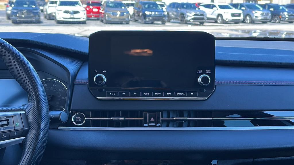 This 2023 Mitsubishi Outlander is equipped with Navigation System, 3rd row seats: split-bench, 4-Wheel Disc Brakes, 5.694 Axle Ratio, 6 Speakers, ABS brakes, Air Conditioning, Alloy wheels, AM/FM radio: SiriusXM, Android Auto & Apple CarPlay, Auto High-beam Headlights, Automatic temperature control, Brake assist, Bumpers: body-color, Driver door bin, Driver vanity mirror, Dual front impact airbags, Dual front side impact airbags, Electronic Stability Control, Emergency communication system: Mitsubishi Connect w/ 24-month trial, Exterior Parking Camera Rear, Four wheel independent suspension, Front anti-roll bar, Front Bucket Seats, Front Center Armrest w/Storage, Front dual zone A/C, Front fog lights, Front reading lights, Fully automatic headlights, Heated door mirrors, Heated Front Bucket Seats, Heated front seats, Illuminated entry, Knee airbag, Leather Shift Knob, Leather steering wheel, Low tire pressure warning, Occupant sensing airbag, Outside temperature display, Overhead airbag, Overhead console, Panic alarm, Passenger door bin, Passenger vanity mirror, Power door mirrors, Power driver seat, Power Liftgate, Power steering, Power windows, Radio data system, Radio: AM/FM 9.0 Navigation w/Smartphone Link, Rain sensing wipers, Rear anti-roll bar, Rear seat center armrest, Rear side impact airbag, Rear window defroster, Rear window wiper, Reclining 3rd row seat, Remote keyless entry, Security system, Speed control, Speed-Sensitive Wipers, Split folding rear seat, Spoiler, Steering wheel mounted audio controls, Synthetic Leather Seat Trim, Tachometer, Telescoping steering wheel, Tilt steering wheel, Traction control, Trip computer, Turn signal indicator mirrors, and Variably intermittent wipers.