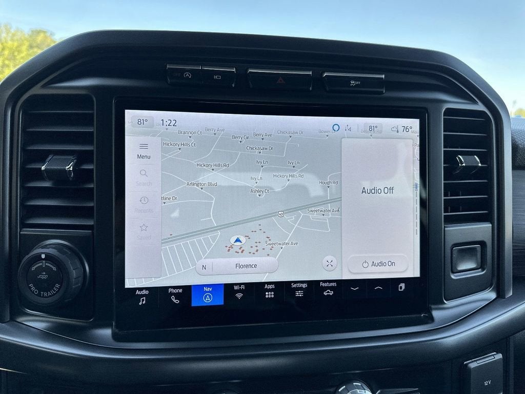 This 2024 Ford F-150 is equipped with Equipment Group 301A Standard, Tow/Haul Package (Integrated Trailer Brake Controller), 4WD, Navigation system: Connected Navigation, 4-Wheel Disc Brakes, 6 Speakers, ABS brakes, Air Conditioning, Alloy wheels, AM/FM radio: SiriusXM with 360L, Auto High-beam Headlights, Auto-dimming Rear-View mirror, Automatic temperature control, Brake assist, Bumpers: chrome, Chrome wheels, Cloth 40/20/40 Front Seat, Compass, Delay-off headlights, Driver door bin, Driver vanity mirror, Dual front impact airbags, Dual front side impact airbags, Electronic Stability Control, Emergency communication system: SYNC 4 911 Assist, Front anti-roll bar, Front Center Armrest w/Storage, Front dual zone A/C, Front fog lights, Front License Plate Bracket, Front reading lights, Front wheel independent suspension, Fully automatic headlights, Heated door mirrors, Illuminated entry, Low tire pressure warning, Occupant sensing airbag, Outside temperature display, Overhead airbag, Overhead console, Panic alarm, Passenger door bin, Passenger vanity mirror, Power door mirrors, Power driver seat, Power steering, Power windows, Radio data system, Radio: AM/FM SiriusXM w/360L, Rear reading lights, Rear step bumper, Rear window defroster, Remote keyless entry, Security system, Speed control, Split folding rear seat, Steering wheel mounted audio controls, SYNC 4 w/Enhanced Voice Recognition, Tachometer, Telescoping steering wheel, Tilt steering wheel, Traction control, Trip computer, Variably intermittent wipers, Voltmeter, and Wheels: 18 Chrome-Like PVD.