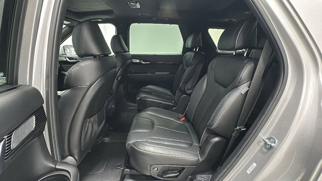 This 2024 Hyundai Palisade is equipped with Option Group 01, Hyundai Certified Used Vehicles Certified, Navigation System, 12 Speakers, 3.510 Axle Ratio, 3rd row seats: split-bench, 4-Wheel Disc Brakes, ABS brakes, Air Conditioning, All-Season Fitted Liners, Alloy wheels, AM/FM radio: SiriusXM, Apple CarPlay & Android Auto, Auto High-beam Headlights, Auto-dimming door mirrors, Auto-dimming Rear-View mirror, Auto-leveling suspension, Automatic temperature control, Brake assist, Bumpers: body-color, Cargo Block, Cargo Tray, Carpeted Floor Mats, Compass, Delay-off headlights, Driver door bin, Driver vanity mirror, Dual front impact airbags, Dual front side impact airbags, Electronic Stability Control, Emergency communication system, Exterior Parking Camera Rear, First Aid Kit, Four wheel independent suspension, Front anti-roll bar, Front Bucket Seats, Front Center Armrest, Front dual zone A/C, Front reading lights, Fully automatic headlights, Garage door transmitter: HomeLink, harman/kardon® Speakers, Heads-Up Display, Heated & Ventilated Front Bucket Seats, Heated door mirrors, Heated front seats, Heated rear seats, Heated steering wheel, Illuminated entry, Knee airbag, Low tire pressure warning, Memory seat, Occupant sensing airbag, Outside temperature display, Overhead airbag, Overhead console, Panic alarm, Passenger door bin, Passenger vanity mirror, Power door mirrors, Power driver seat, Power Liftgate, Power moonroof, Power passenger seat, Power steering, Power windows, Premium Nappa Leather Seat Trim, Radio data system, Radio: AM/FM/MP3 Premium Audio System, Rain sensing wipers, Rear air conditioning, Rear anti-roll bar, Rear audio controls, Rear reading lights, Rear side impact airbag, Rear window defroster, Rear window wiper, Reclining 3rd row seat, Remote keyless entry, Roadside Assistance Kit, Security system, Speed control, Speed-sensing steering, Split folding rear seat, Spoiler, Steering wheel mounted audio controls, Tachometer, Telescoping steering wheel, Tilt steering wheel, Traction control, Trip computer, Turn signal indicator mirrors, Variably intermittent wipers, Ventilated front seats, Ventilated rear seats, Wheel Locks, and Wheels: 20 x 7.5J Calligraphy Exclusive Alloy.