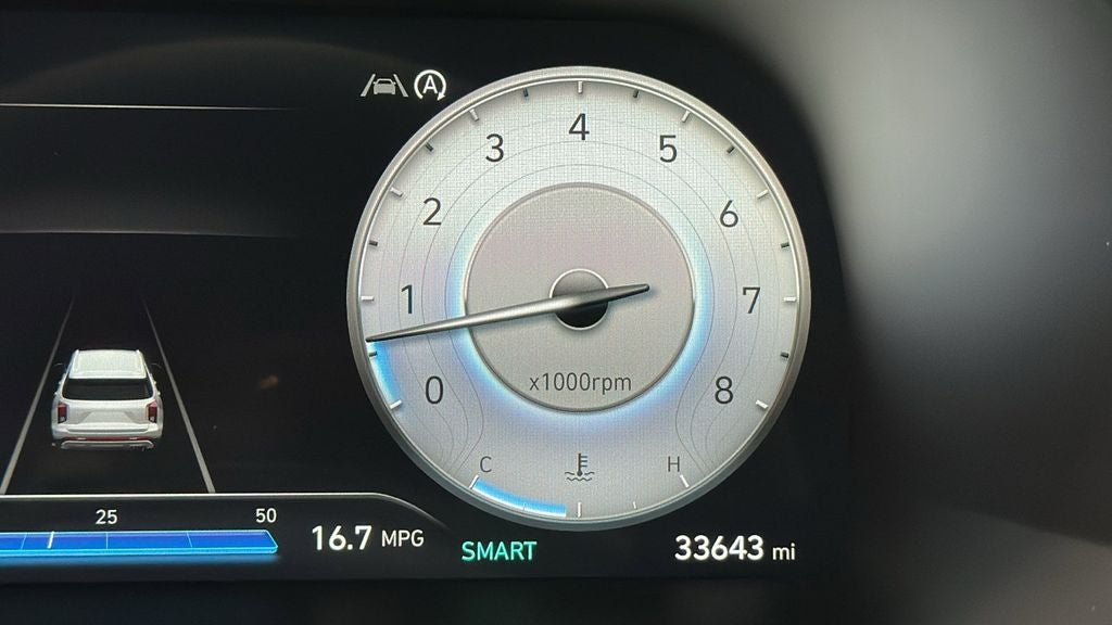 This 2024 Hyundai Palisade is equipped with Option Group 01, Navigation System, 12 Speakers, 3.510 Axle Ratio, 3rd row seats: split-bench, 4-Wheel Disc Brakes, ABS brakes, Air Conditioning, Alloy wheels, AM/FM radio: SiriusXM, Apple CarPlay & Android Auto, Auto High-beam Headlights, Auto-dimming door mirrors, Auto-dimming Rear-View mirror, Auto-leveling suspension, Automatic temperature control, Brake assist, Bumper Applique, Bumpers: body-color, Cargo Net, Carpeted Floor Mats, Compass, Delay-off headlights, Driver door bin, Driver vanity mirror, Dual front impact airbags, Dual front side impact airbags, Electronic Stability Control, Emergency communication system, Exterior Parking Camera Rear, First Aid Kit, Four wheel independent suspension, Front anti-roll bar, Front Bucket Seats, Front Center Armrest, Front dual zone A/C, Front reading lights, Fully automatic headlights, Garage door transmitter: HomeLink, harman/kardon® Speakers, Heads-Up Display, Heated & Ventilated Front Bucket Seats, Heated door mirrors, Heated front seats, Heated rear seats, Heated steering wheel, Illuminated entry, Knee airbag, Leather Seat Trim, Low tire pressure warning, Memory seat, Mudguards, Occupant sensing airbag, Outside temperature display, Overhead airbag, Overhead console, Panic alarm, Passenger door bin, Passenger vanity mirror, Power door mirrors, Power driver seat, Power Liftgate, Power moonroof, Power passenger seat, Power steering, Power windows, Radio data system, Radio: AM/FM/MP3 Premium Audio System, Rain sensing wipers, Rear air conditioning, Rear anti-roll bar, Rear audio controls, Rear reading lights, Rear side impact airbag, Rear window defroster, Rear window wiper, Reclining 3rd row seat, Remote keyless entry, Roof Rack Cross Rails, Security system, Speed control, Speed-sensing steering, Split folding rear seat, Spoiler, Steering wheel mounted audio controls, Tachometer, Telescoping steering wheel, Tilt steering wheel, Traction control, Trip computer, Turn signal indicator mirrors, Variably intermittent wipers, Ventilated front seats, Ventilated rear seats, and Wheels: 20 x 7.5J Alloy.