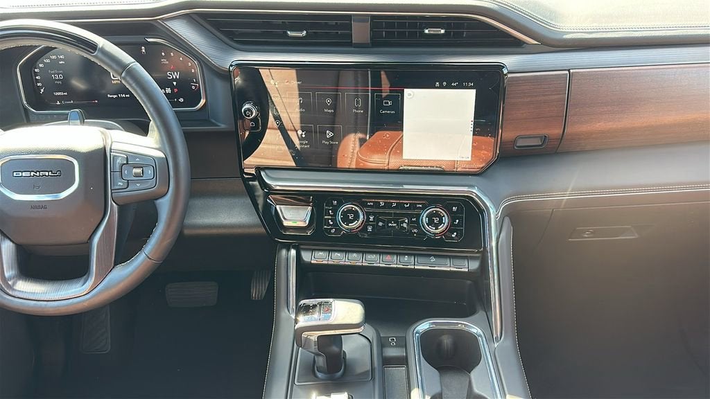 This 2026 GMC Sierra 1500 is equipped with Preferred Equipment Group 5SB (120-Volt Bed Mounted Power Outlet, 120-Volt Interior Power Outlet, 2 Charge/Data USB Ports Inside Center Console, 2 Type-C Charge-Only Rear USB Ports, 2 USB Ports, Auto-Locking Rear Differential, Bed View Camera, Chrome Recovery Hooks, Color-Keyed Carpeting Floor Covering, Deep-Tinted Glass, Electric Rear-Window Defogger, Floor-Mounted Center Console, Front Rain-Sensing Wipers, HD Surround Vision, Heated 2nd Row Outboard Seats, Heavy-Duty Air Filter, Hill Descent Control, Hitch View, Integrated Trailer Brake Controller, LED Cargo Area Lighting, Multicolor 15 Diagonal Head-Up Display, OnStar Services Capable, Perimeter Lighting, Power Door Locks, Power Sunroof, Push Button Start, Rear Cross Traffic Braking, Rear Pedestrian Detection, Rear Wheelhouse Liners, Remote Vehicle Starter System, Steering Wheel Audio Controls, Trailer Camera Provisions, Trailer Side Blind Zone Alert, Trailer Tire Pressure Monitor System, Universal Home Remote, Wi-Fi Hotspot Capable, and Wireless Charging), Trailering Package (Hitch Guidance), GMC Certified Pre-Owned Certified, 10-Speed Automatic, 4WD, Alpine Umber Leather, Navigation System, 12 Speakers, 170 Amp Alternator, 3.23 Rear Axle Ratio, 4-Wheel Disc Brakes, ABS brakes, Adaptive suspension, Air Conditioning, Alloy wheels, AM/FM radio: SiriusXM with 360L, Apple CarPlay/Android Auto, Auto High-beam Headlights, Auto-dimming door mirrors, Auto-dimming Rear-View mirror, Automatic temperature control, Brake assist, Buckle to Drive, Bumpers: body-color, Compass, Delay-off headlights, Driver door bin, Driver Memory, Driver vanity mirror, Dual Active Exhaust, Dual front impact airbags, Dual front side impact airbags, Electronic Stability Control, Emergency communication system: OnStar, Enhanced Automatic Emergency Braking, Following Distance Indicator, Forward Collision Alert, Front anti-roll bar, Front Bucket Seats, Front Center Armrest, Front dual zone A/C, Front fog lights, Front Pedestrian Braking, Front reading lights, Front wheel independent suspension, Full Grain Leather Seat Trim, Fully automatic headlights, Garage door transmitter, Genuine wood console insert, Genuine wood dashboard insert, Genuine wood door panel insert, Heads-Up Display, Heated door mirrors, Heated front seats, Heated rear seats, Heated steering wheel, Illuminated entry, Low tire pressure warning, Memory seat, Occupant sensing airbag, Outside temperature display, Overhead airbag, Overhead console, Panic alarm, Passenger door bin, Passenger vanity mirror, Power door mirrors, Power driver seat, Power moonroof, Power passenger seat, Power steering, Power windows, Radio data