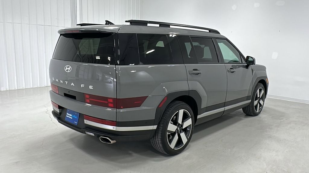 This 2026 Hyundai Santa Fe is equipped with Option Group 01, Hyundai Certified Used Vehicles Certified, Black Leather, Navigation System, 12 Speakers, 3rd row seats: bench, 4-Wheel Disc Brakes, ABS brakes, Air Conditioning, All Season Fitted Liners, Alloy wheels, AM/FM radio: SiriusXM, Apple CarPlay & Android Auto, Auto High-beam Headlights, Auto-dimming Rear-View mirror, Automatic temperature control, Brake assist, Bumpers: body-color, Cargo Blocks, Cargo Cover/Screen, Cargo Net, Cargo Organizer, Cargo Tray, Carpeted Floor Mats, Delay-off headlights, Driver door bin, Driver vanity mirror, Dual front impact airbags, Dual front side impact airbags, Electronic Stability Control, Emergency communication system, Exterior Parking Camera Rear, First Aid Kit, Four wheel independent suspension, Front anti-roll bar, Front Bucket Seats, Front Center Armrest, Front dual zone A/C, Front reading lights, Fully automatic headlights, Garage door transmitter: HomeLink, Heated and Ventilated Front Bucket Seats, Heated door mirrors, Heated front seats, Heated rear seats, Heated steering wheel, Illuminated entry, Knee airbag, Leather Seat Trim, Leather steering wheel, Low tire pressure warning, Memory seat, Occupant sensing airbag, Outside temperature display, Overhead airbag, Overhead console, Panic alarm, Passenger door bin, Passenger vanity mirror, Power door mirrors, Power driver seat, Power Liftgate, Power moonroof, Power passenger seat, Power steering, Power windows, Radio: AM/FM/HD Bose Premium Audio System, Rain sensing wipers, Rear anti-roll bar, Rear side impact airbag, Rear window defroster, Rear window wiper, Remote keyless entry, Security system, Speed control, Speed-sensing steering, Split folding rear seat, Spoiler, Steering wheel mounted audio controls, Tachometer, Telescoping steering wheel, Tilt steering wheel, Traction control, Trip computer, Turn signal indicator mirrors, Variably intermittent wipers, Ventilated front seats, and Wheels: 20 x 8.5J Alloy.